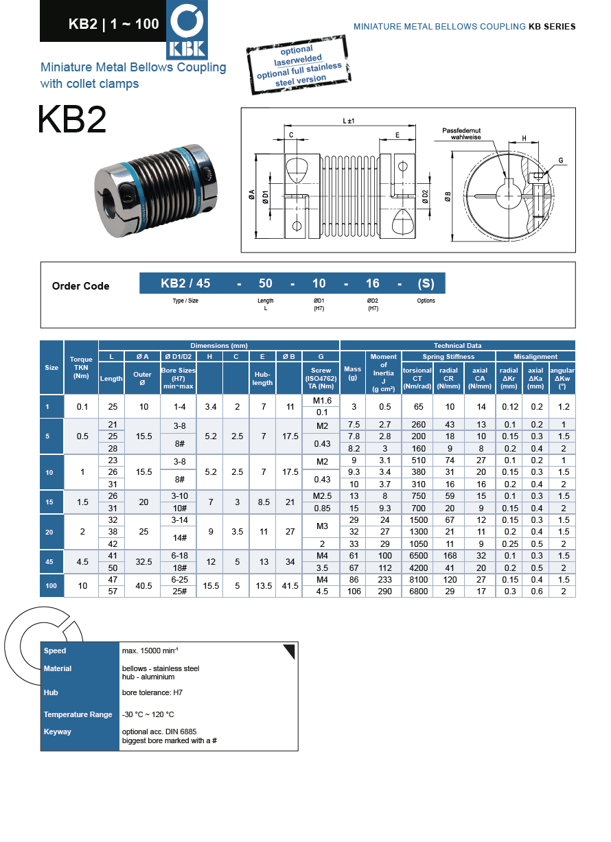 - Enkoderler, takometreler, potansiyometreler, servo sürücüler, NC eksenleri, adım motorları için ideal metal körüklü kaplin
